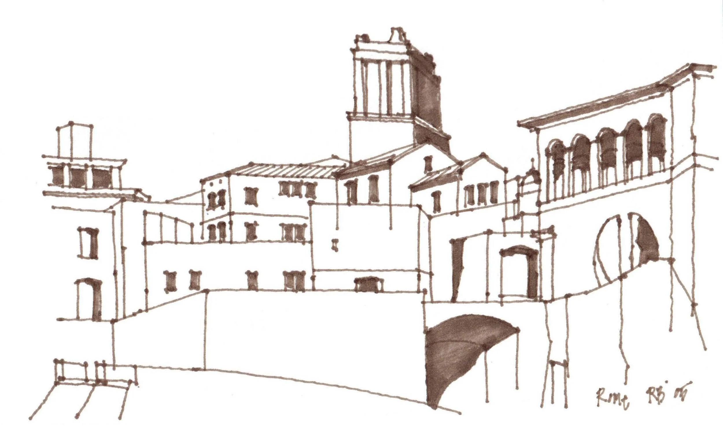 From time to time we will be posting random sketches, drawings, and photos past and present. These will just be random images from travels, in studio design sketches, etc., etc. This particular sketch was done of the Roman Forum, Rome, Italy around 2005. The medium is sepia tone marker on white sketchbook paper.